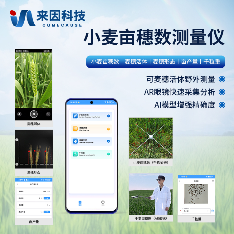 小麦亩穗数测量主要用于快速、准确地测量单位面积内的小麦穗数。该设备结合图像识别技术、人工智能算法与高分辨率摄像系统,通过对实地拍摄的小麦图像进行分析,自动识别并计数麦穗数量,极大地提高了测量效率与准确性。