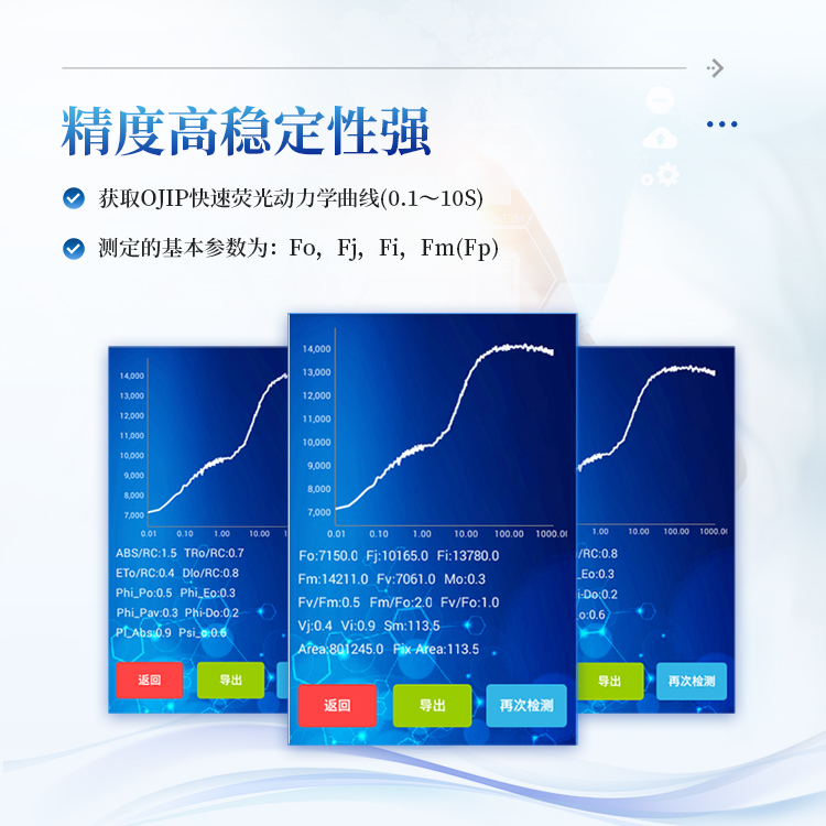 测定的基本参数为:Fo,Fj,Fi,Fm(Fp)