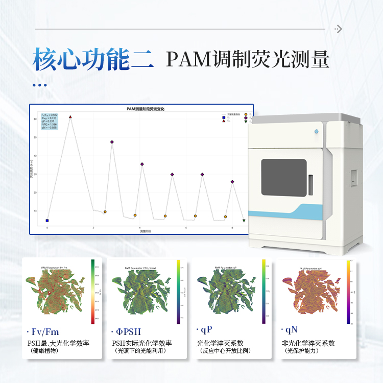 PAM测量模式采用调制荧光技术,在不同光照条件下监测植物的光合活性,能够区分光化学淬灭和非光化学淬灭,深入了解植物的光保护机制。