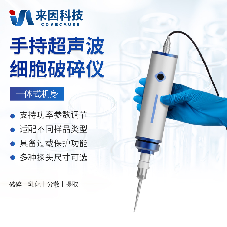 手持超声波细胞破碎仪是一种便携式、高精度的超声波处理设备,适用于实验室小规模样品破碎、乳化、分散和提取等操作。其一体化设计集成了超声波发生器和换能器,操作灵活,可手持使用或搭配支架固定,适用于生物、化学、材料等领域的高效样品处理。