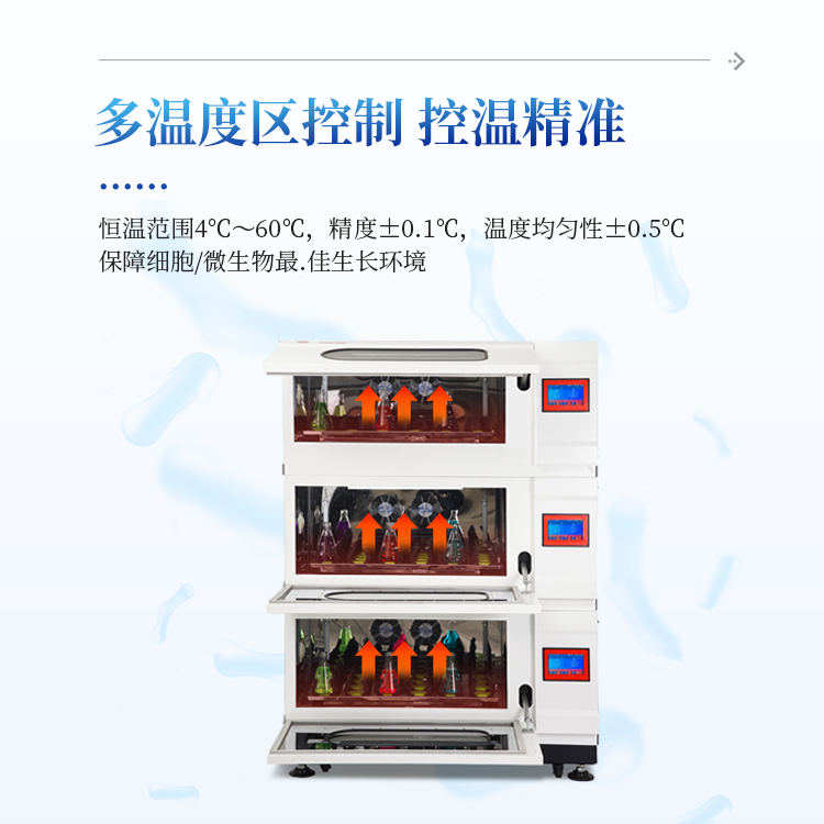 组合叠加式摇床是专为面积窄小的实验室而研制开发的一款具有多单元叠加和多温度区控制的产品。