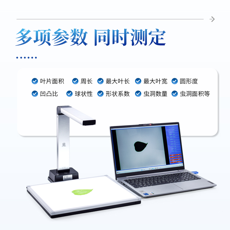 大叶片分段测量:可以将超过量程的叶片分段测量,系统会自动合并两张图片并综合分析各参数