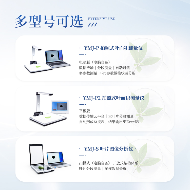 YMJ-P拍照式叶面积仪(电脑版)由图像采集设备和图像处理软件组成,采用本公司新开发的图像识别软件,根据叶片轮廓特征提取、图形实物转换、边缘检测等技术,能够形象并快速得到所测叶片面积、周长、虫洞数量等参数。相比传统的叶面积,具有测量更快速简便、结果更形象客观、数据多样并大大减少了人为操作带来的误差。