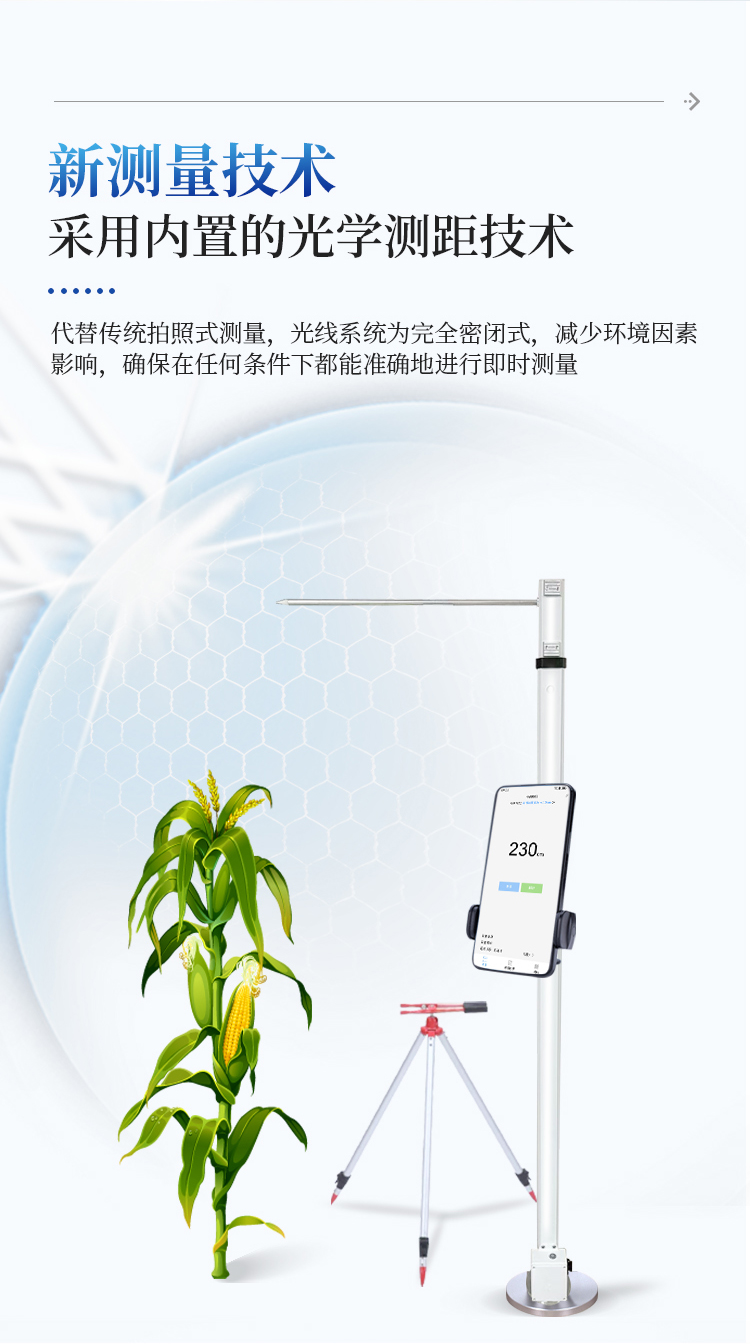 作物株高测量仪是专为农业领域设计的一种便携式、快速响应的农作物高度测量工具。采用光学测距技术,并通过内置算法进行现场分析,能够实时获取作物的高度数据。