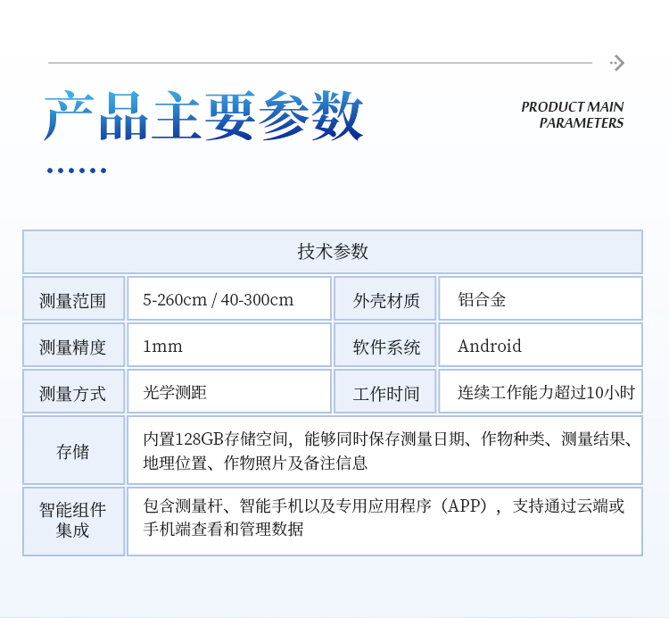 10、广泛应用性 - 最大测量高度可达3米,适用于大多数类型的农作物株高测量需求。