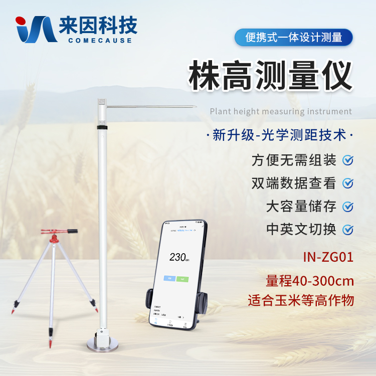 简要描述: 植物株高测量仪IN-ZG01是专为农业领域设计的一种便携式、快速响应的农作物高度测量工具。采用光学测距技术,并通过内置算法进行现场分析,能够实时获取作物的高度数据。
