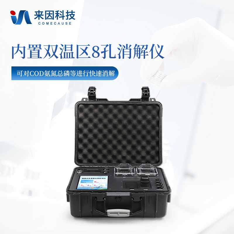 4、内置双温区8孔消解仪,左右温区独立控制,可对COD氨氮总磷等进行快速消解。