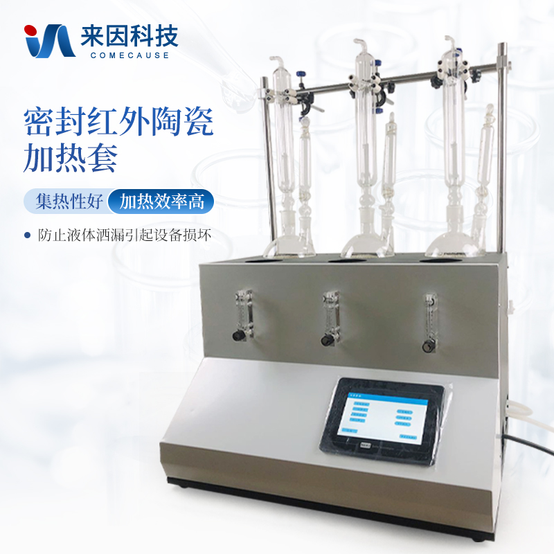 选用密封红外陶瓷加热套,集热性好,加热效率高,并可防止液体洒漏引起的设备损坏问题。