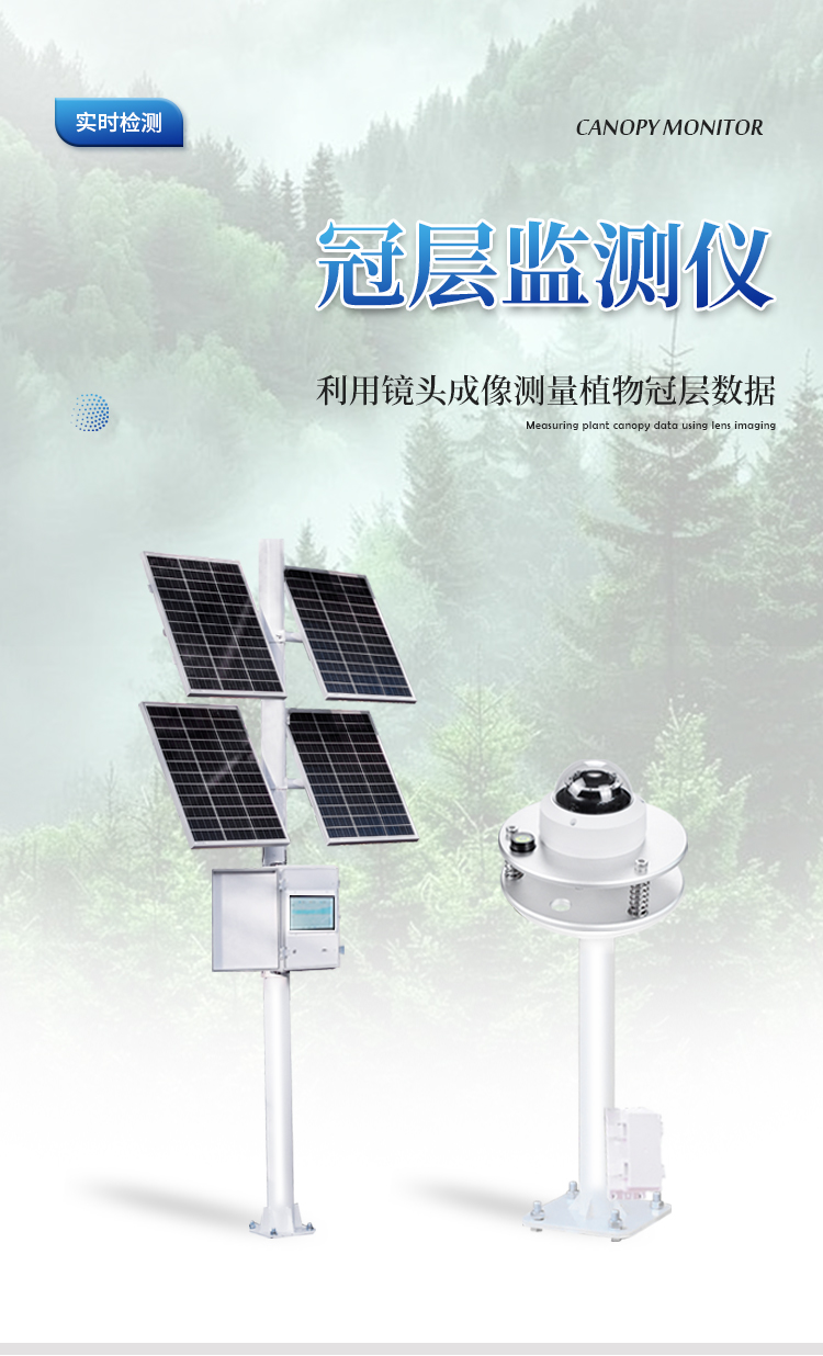太阳能供电系统、冠层分析主机、可移动式图像采集器(含100°镜头)、传输模块、安装支架、数据云平台