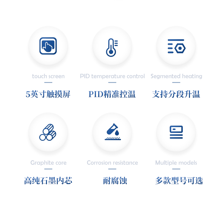 4. 采用优质石墨炉内芯,平均温差较小,样品效果一致性好,热传导效率更高。