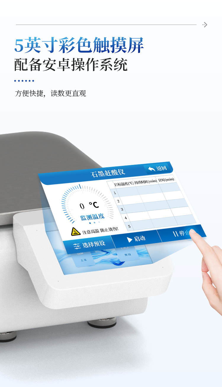 本石墨消解仪是替代传统电热板、电热炉的理想选择,同时仪器采用经典的30 mm孔径设计,完美兼容市场主流的50 mL、100 mL消解管,是实验室值得信赖的得力助手。