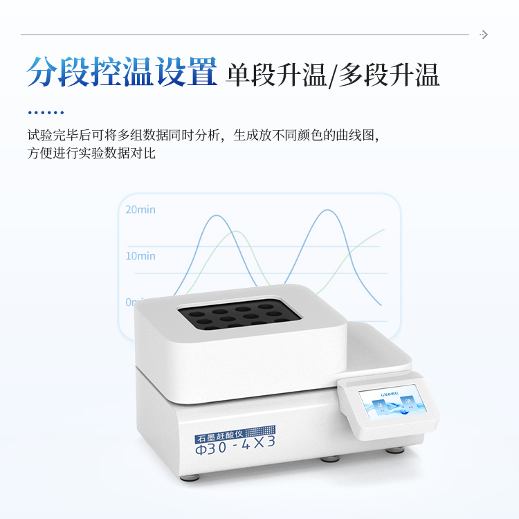 3. 分段控温设置,即可单段升温,也可多段升温,设置灵活,仪器将自动按顺序完成。