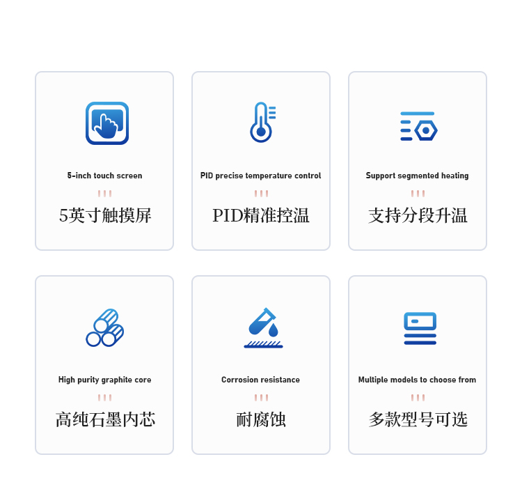 采用优质石墨炉内芯,平均温差较小,样品效果一致性好,热传导效率更高。石墨块具有特氟龙涂层,耐腐蚀,延长使用寿命。