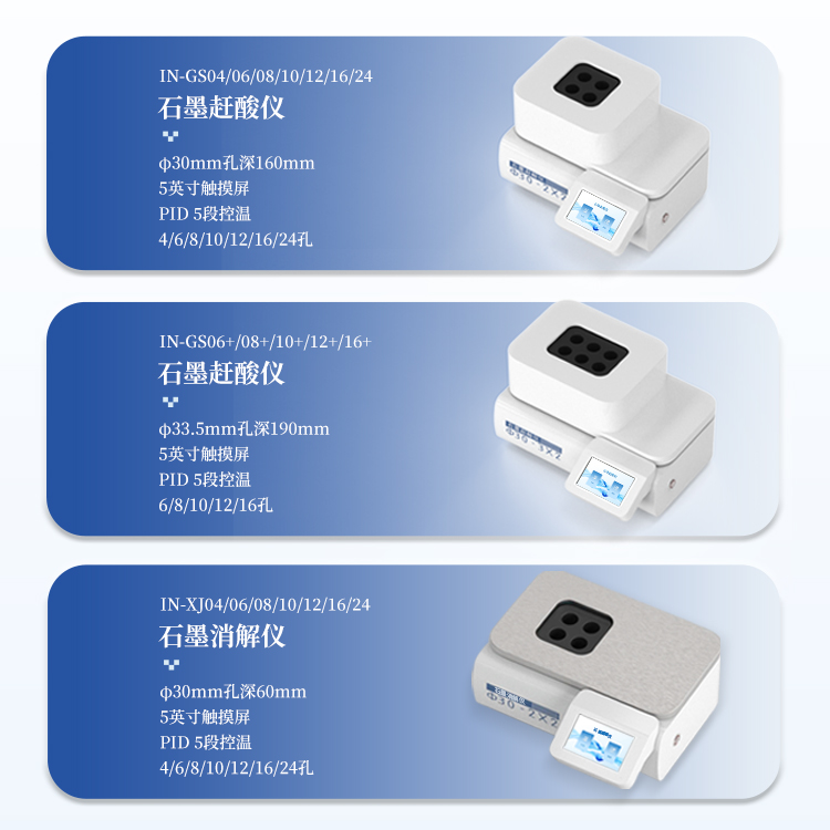 简要描述: 石墨赶酸仪IN-GS24具有快速、高效、便捷等优点,适用于食品、药品、质检、环保、疾控、化工、高校等行业样品的处理。可用于微波消解的预处理和赶酸处理,是原子吸收、原子荧光、ICP-AES等分析仪器的理想配套产品,更适合与微波消解仪配套使用。