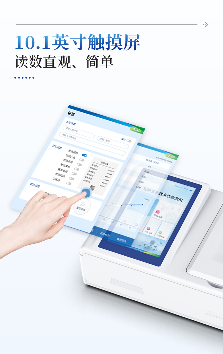 2、10.1英寸液晶触摸屏显示,人性化中文操作界面,读数直观、简单。