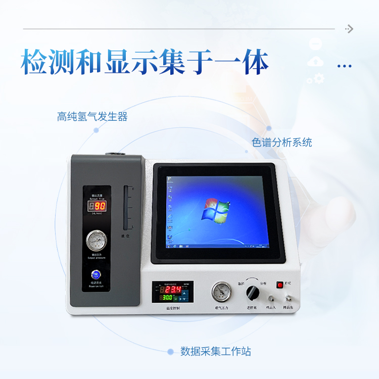 1、将高纯氢气发生器 ,工业级电脑、分析仪、色谱工作站完美结合,检测和显示于一体,通过一次进样可以完成气体中含量的精确分析,可直接打印分析报告,只需一台仪器就可完成整个分析,检测过程更简单化。