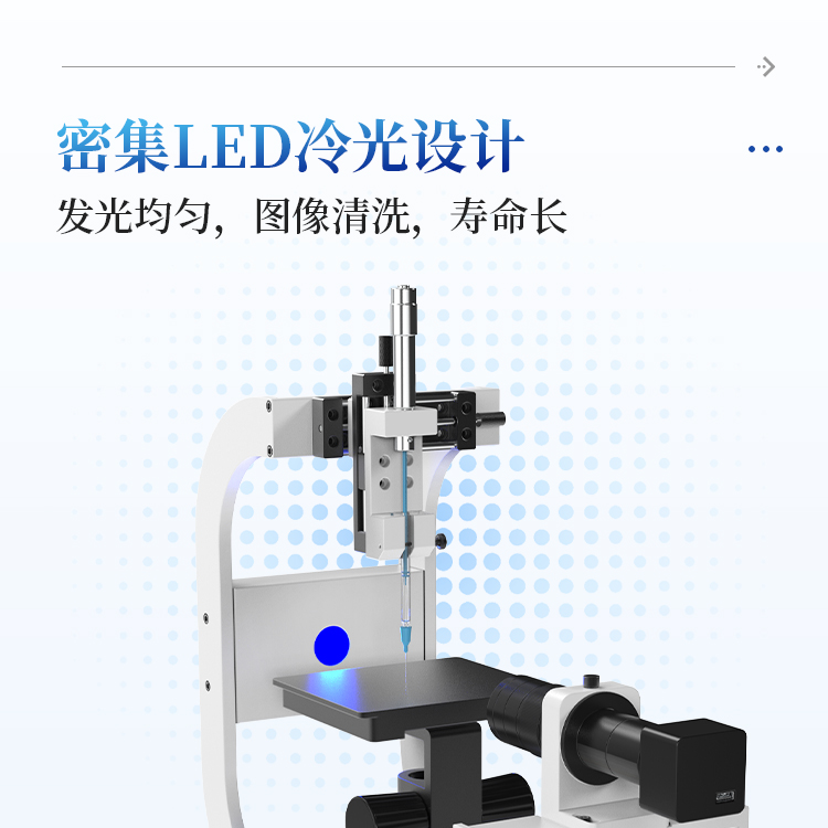 2. 采用工业级密集可调LED冷光源系统(寿命25000H以上),保证成像更清晰,同时避免额外热度所导致的小液滴挥发;