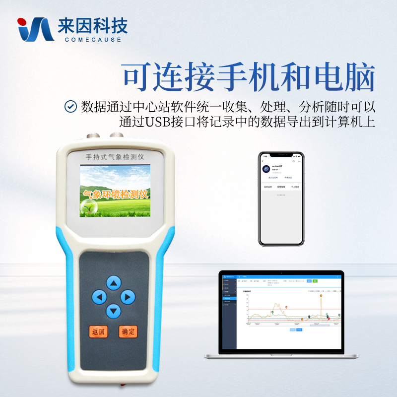 手持式智能农业气象环境检测仪是我们专门针对农田、草场局部小尺度环境设计的,对与植被和农作物生长密切相关的土壤、水气等环境参数监测的农田小气候站。它主要观测与农业相关的空气温度、空气湿度、光照强度、二氧化碳浓度、露点温度、光合有效辐射、土壤温度、土壤湿度等8个环境参数气象要素,为农业科研、农业生产等提供良好的支持。
