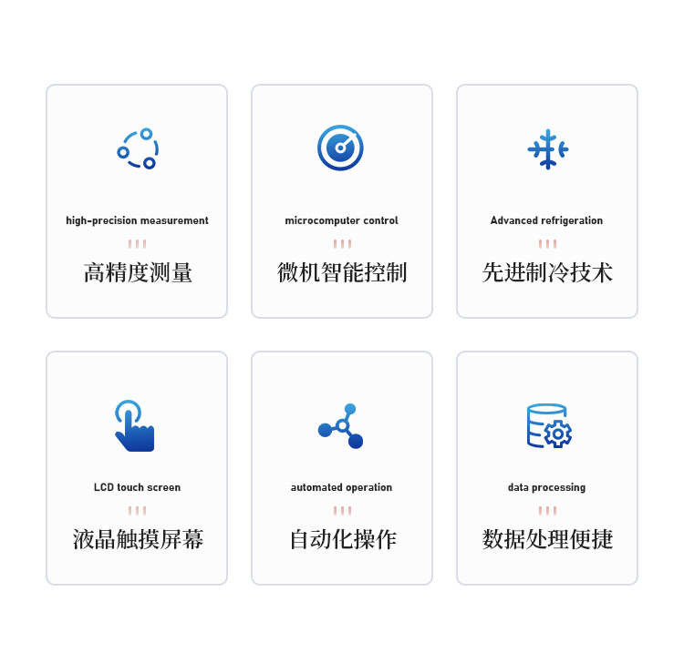 先进的电子制冷工艺,完全不受环境温度变化的影响,确保仪器内外筒温差符合国标要求。可连续长时间工作。