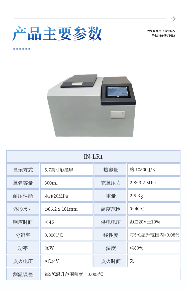 本仪器适用于电力、煤炭、冶金、石化、煤化、环保、水泥、造纸、地质勘探、农牧、医药科研、教学等行业或部门测量煤、石油、水泥黑生料、粮食、饲料等固态或液态可燃物的热值。