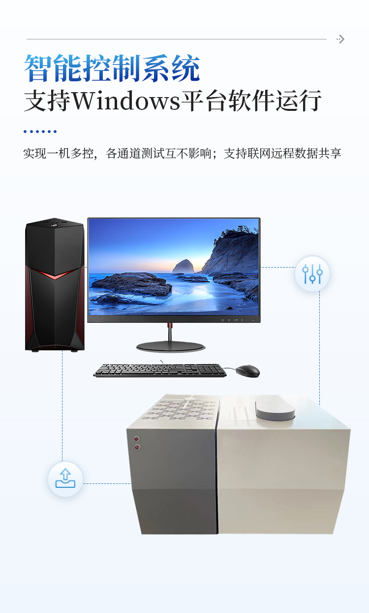 采用 WindowsXP 操作系统,实现一机多控,相互间测试互不影响,软件运行稳定性高。