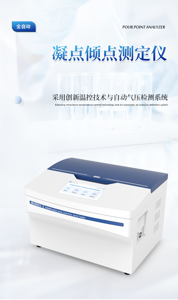 全自动凝点倾点测定仪主要用于石油产品的倾点凝点值测定,是一款集自动化、智能化和高精度于一体的凝点/倾点测定设备。通过创新温控技术与自动气压检测系统,可快速、准确地测定液体样品的凝点和倾点。