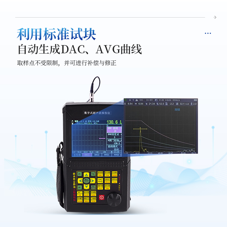 4、利用标准试块自动生成DAC、AVG曲线,取样点不受限制,并可进行补偿与修正