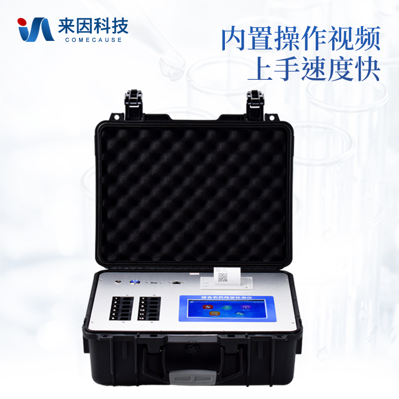 综合农药残留检测仪,除了遵循国标对有机磷和氨基甲酸酯类农药进行检测外,还可以针对具体农药进行分项准确检测,包含克百威、毒死蜱、异丙威、啶虫脒、氟虫腈、水胺硫磷、甲萘威、三唑磷、百草枯、甲霜灵、杀螟硫磷、百菌清-多菌灵2合1、氟虫腈-甲萘威2合1、甲基对硫磷、乙草胺、吡虫啉、多菌灵、阿维菌素、有机磷、甲草胺、涕灭威、百菌清、噻菌灵、三唑酮、氯吡脲、多效唑、氯噻啉、霜霉威、噻虫啉、辛硫磷、4-氯苯氧乙酸、2,4-二氯苯氧乙酸、2,4,5-三氯苯氧乙酸、6-苄基腺嘌呤、除草定、烯啶虫胺、噻虫嗪、异菌脲、氟苯脲、腐霉利、甲氰菊酯、高效氯氟氰菊酯、二甲戊灵、氟节甲基异柳磷、哒螨灵、噻虫胺、烯酰吗啉、嘧菌酯、氟乐灵、嘧霉胺、三唑酮/三唑醇、灭蝇胺、戊唑醇、甲拌磷、氯虫苯甲酰胺、二嗪磷、氧乐果、甲基吡啶磷、阿灭丁、双甲脒等众多杀虫剂化合物。