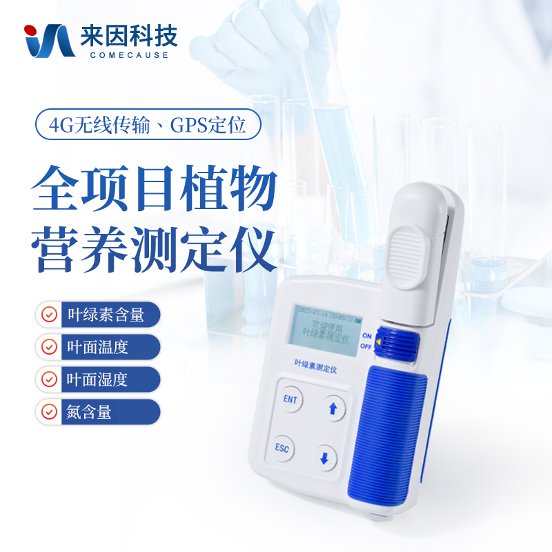 植物养分测定仪可以即时无损测量植物的叶绿素相对含量(单位 SPAD)或绿色程度、氮含量、叶面湿度、叶面温度,从而了解植物真实的硝基需求量并且了解土壤硝基的缺乏程度或是否过多地施加了氮肥。可以通过此款仪器来增加氮肥的利用率,并可保护环境。可广泛应用于农林相关科研单位和高校对植物生理指标的研究和农业生产的指导。