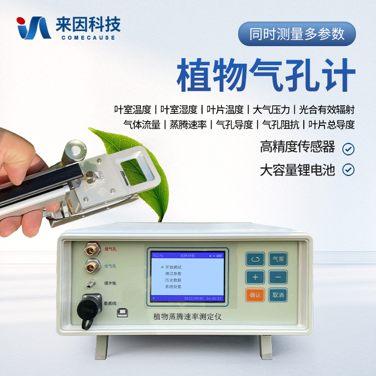 植物气孔计是一款采用开路测量的科研型植物气孔计。用来测量各种因素对叶片气孔行为的影响,可方便、重复、准确地计算出气孔阻抗、气孔导度和蒸腾速率,还可测得空气温湿度,叶面温度,光合有效辐射。广泛的应用于植物叶片的水分生理研究,农作物水分利用、水分胁迫危害、生物化控调节效果等研究。