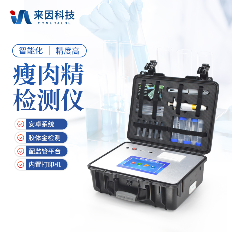 瘦肉精检测仪可现场快速检测盐酸克伦特罗、莱克多巴胺、沙丁胺醇、己烯雌酚、喹乙醇等。仪器预留其他项目检测程序和端口,根据日后需求可方便的自主增加检测项目。日后可升级为检测抗生素、兽药残留、动物疫病、病害肉、的综合类型仪器。