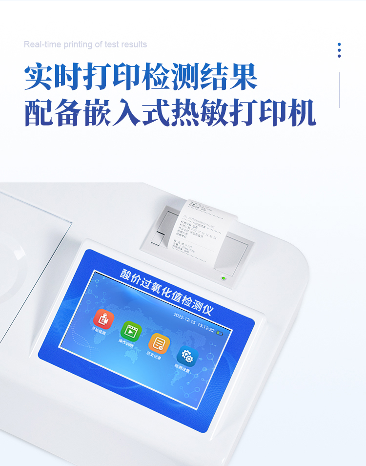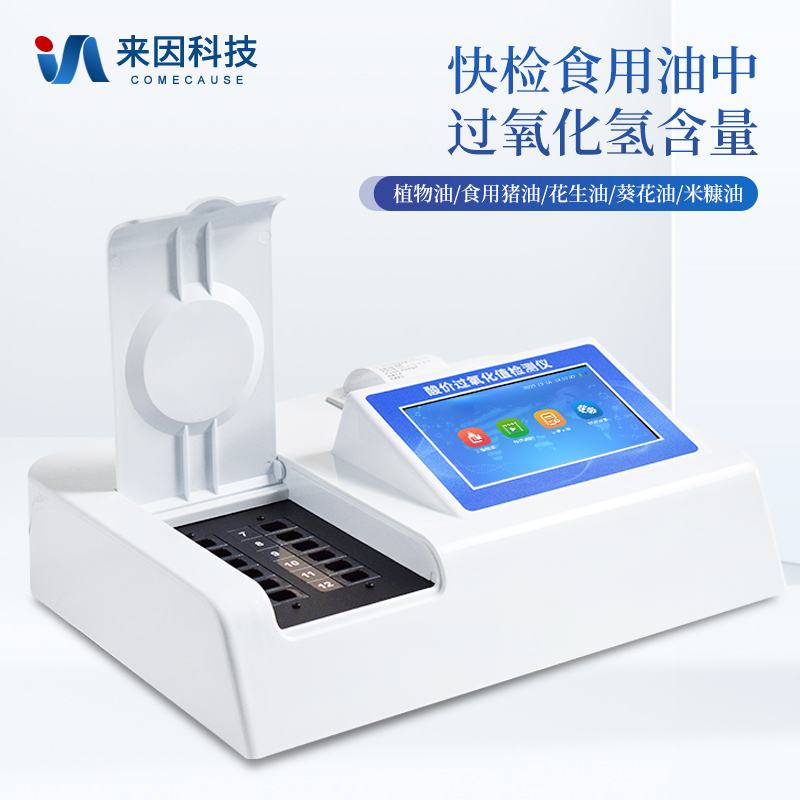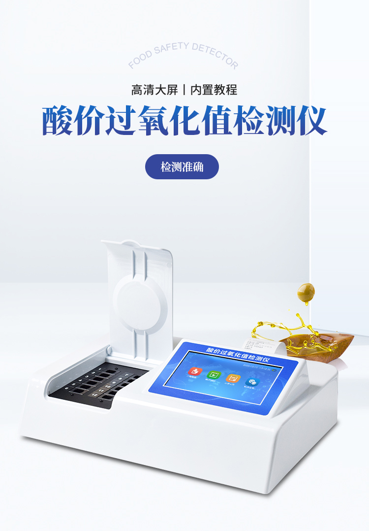 食用油过氧化值检测仪为集成化油品快速检测分析设备,能够快速检测食用植物油、食用猪油、花生油、葵花油、米糠油、食品、肉制品中的过氧化值含量;通过检测可确定植物油是否符合国家标准或是否为劣质油、地沟油等。仪器预留其他项目检测程序和端口,根据日后需求可方便的自主增加检测项目。日后可升级为检测水产品、面制品的综合类型仪器。