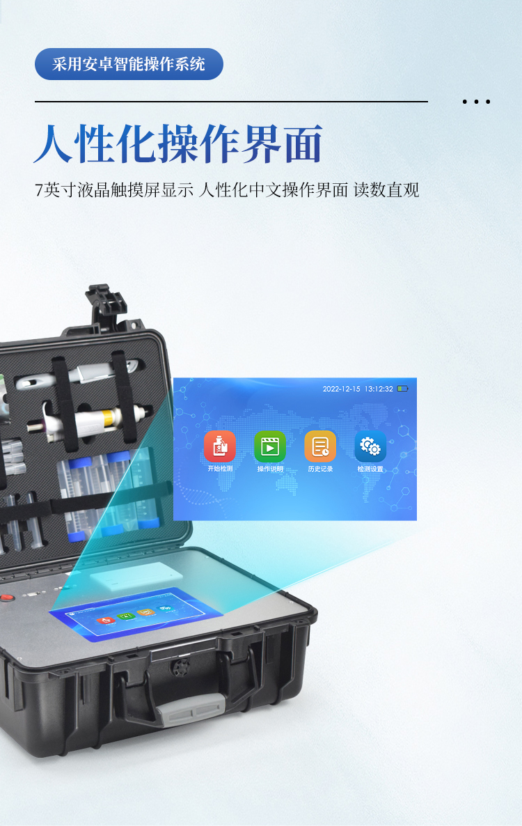 1、安卓智能操作系统,采用更加高效和人性化操作,仪器具有网线连接、wifi联网上传、GPRS无线远传功能,快速上传数据。