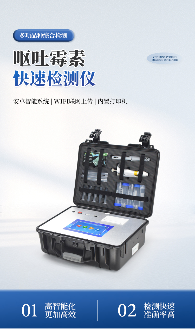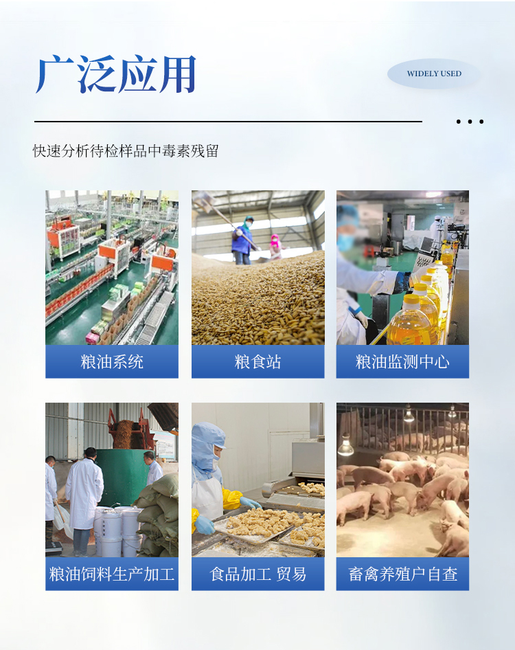呕吐毒素快速测试仪应用竞争抑制免疫层析的原理,快速分析待检样品中是否含有呕吐毒素残留;呕吐毒素检测仪能够快速检测玉米、小麦、大米、大麦、小米和燕麦等谷物、饲料、面粉、食用油、调味品等食品中的呕吐毒素,适用于粮油监测中心、粮油饲料生产加工、食品加工贸易、畜禽养殖户自查、工商质监部门用于市场快速筛查等